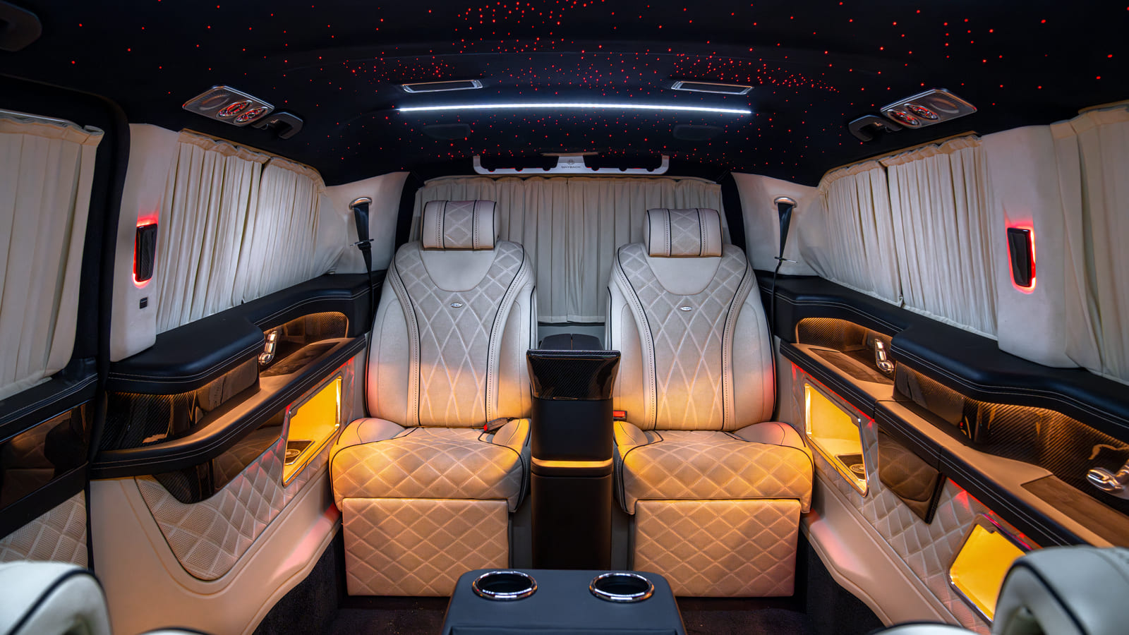 Mercedes-Benz Vito’nun standart bir panelvan araç olma sınırlarını aşan özel bir dönüşümle VIP bir taşıma deneyimine hazır olun. Aykut VIP Dizayn‘ın lüks ve konforu bir araya getiren özel dokunuşlarıyla Mercedes-Benz Vito, artık Maybach standartlarında.